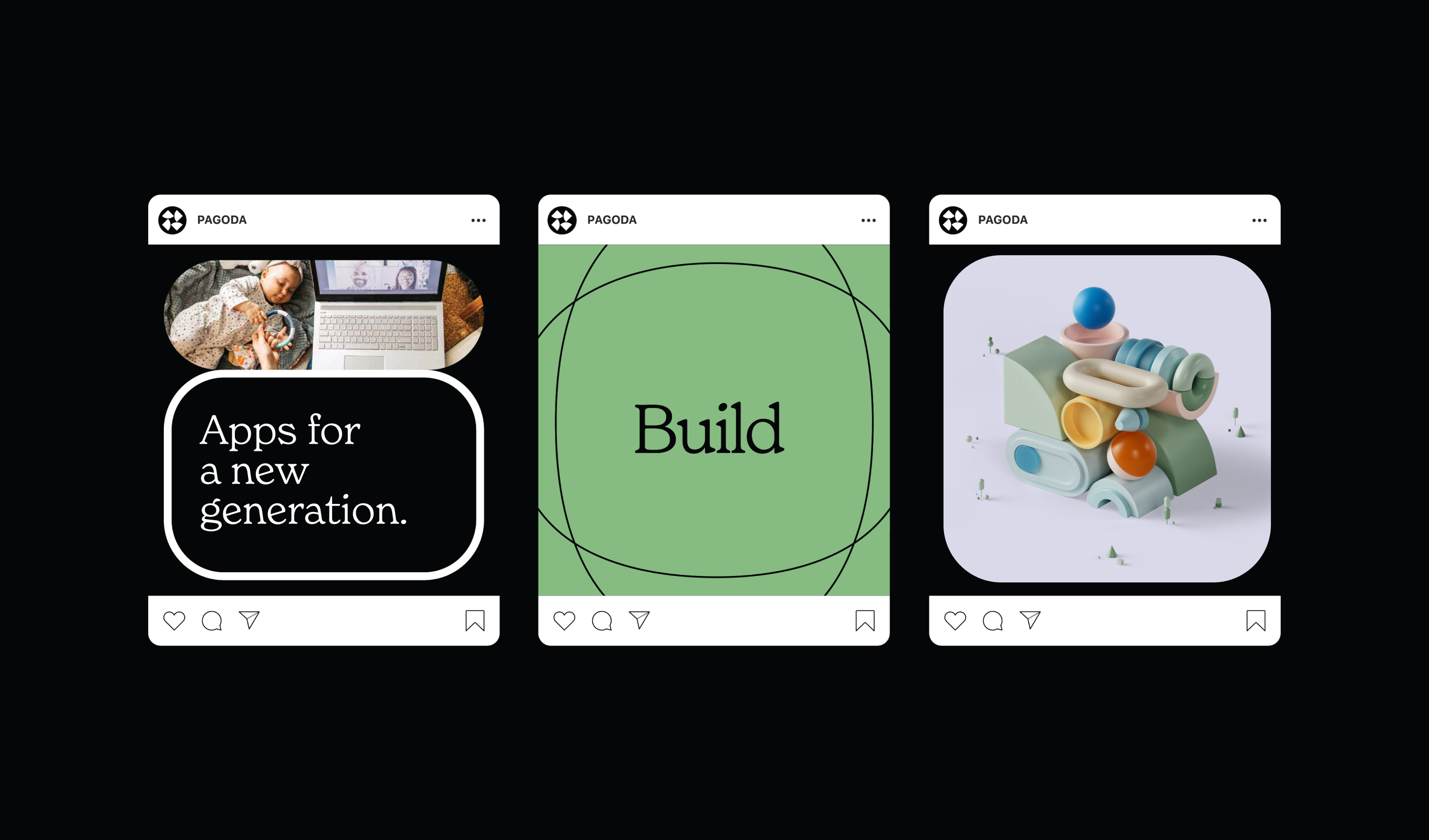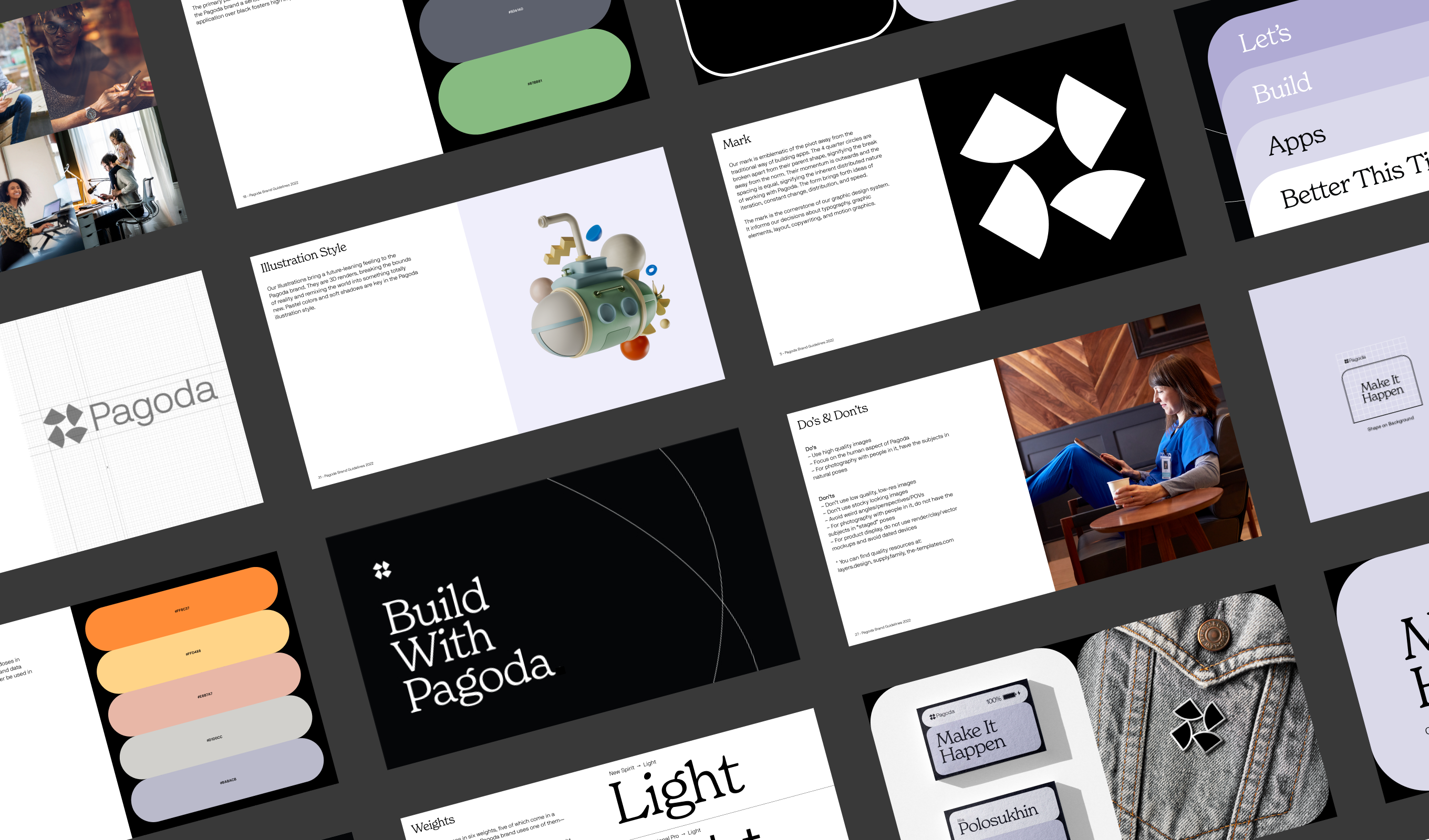 Pagoda’s technology challenges the blockchain status quo by leading with accessibility and user-friendliness, so their new brand had to make this crystal clear. Instead of hiding behind overly-technical language, the Pagoda voice speaks in simple, direct terms. Where other blockchains lead with ominous, futuristic design, Pagoda’s brand is centered around the simple human joy of building something great.