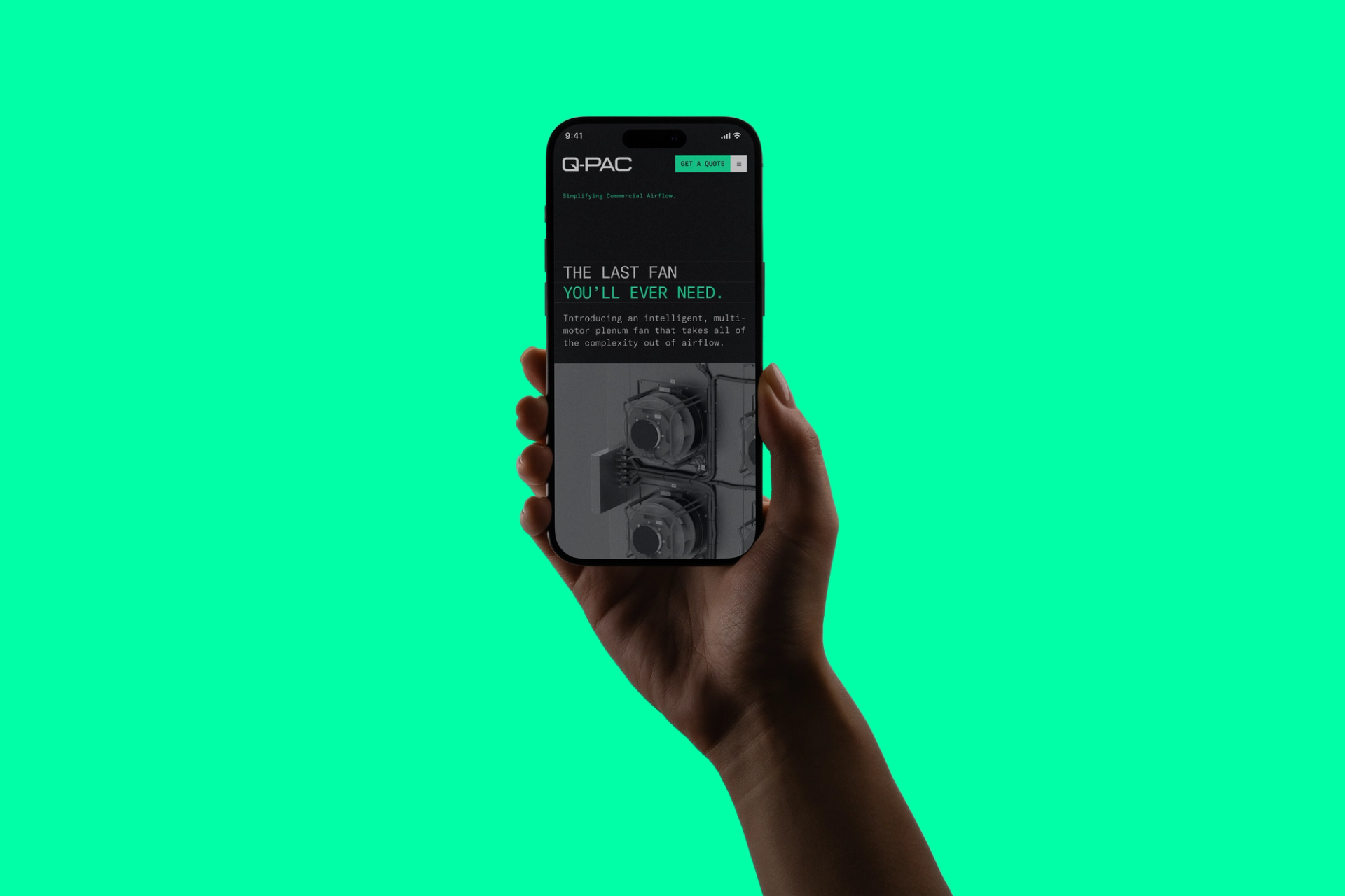 Today’s commercial fans—the lifeblood of our buildings—are overly expensive, complicated, and demanding. All too often, they’re more of an obstacle to comfort than a solution. Q-PAC is disrupting the space with a modular, tech-enabled fan system that removes all the complexity from commercial airflow. Working closely with their CEO Matt Kent & John Rougeux from Flag & Frontier, we created their new messaging, brand, website, and more, with a single, ambitious goal: to make commercial fans sexy.